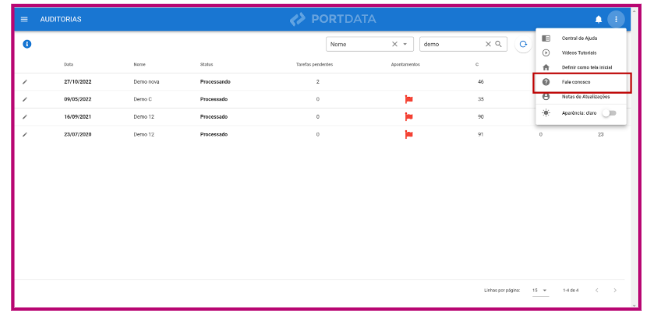 Na plataforma, vá no canto superior direito e clique nos três pontos laterais, lá você encontrará a opção “Fale conosco”.