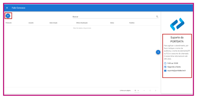 Ao selecionar este botão, você poderá abrir um chamado clicando em “+”.