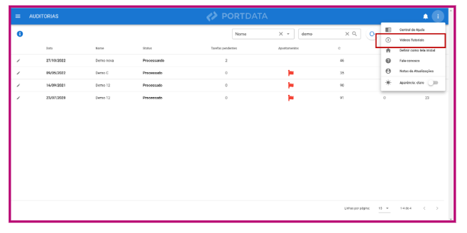 Na plataforma, vá no canto superior direito e clique nos três pontos laterais, lá você encontrará os vídeos tutoriais.