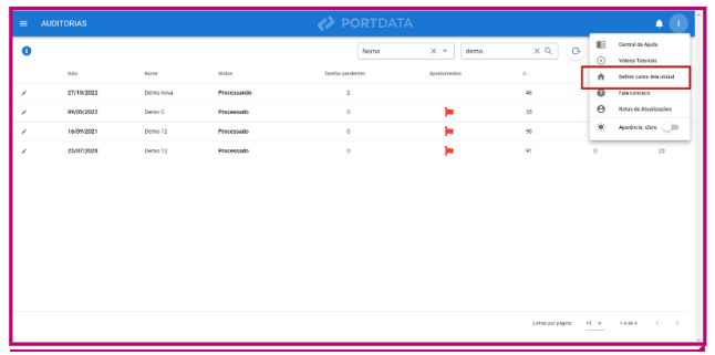 Se você tiver interesse em definir uma tela inicial específica para ser aberta imediatamente após a realização do login, basta selecionar o botão “Definir como tela inicial”.