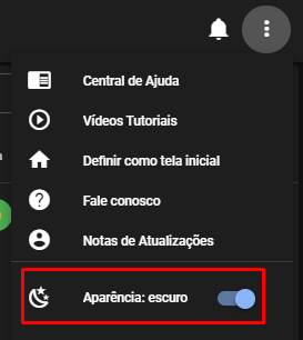 Para que nossos usuários tenham maior conforto visual, disponibilizamos a configuração de “Aparência claro/escuro” conforme abaixo: