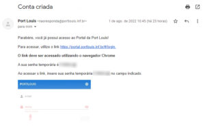 Como sei que meu usuário foi criado?O administrador da conta poderá criar novos usuários a qualquer momento. O novo usuário deverá receber um breve email (origem Port Louis ou noreply@… assunto “Conta criada”) contendo as instruções para o acesso ao nosso portal, conforme imagem abaixo: