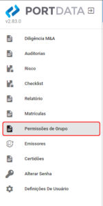 4. Depois que a tela carregar novamente, vá no menu lateral a esquerda e escolha “Permissões de Grupo”: