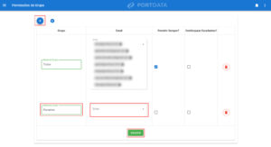 5. Então clique “+” no canto superior esquerdo, crie um grupo chamado parceiros (independente se for um ou mais usuários da mesma empresa), liste o e-mail de todos usuários deles e clique em “salvar”: