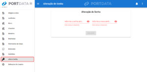 1. No menu, vá em “Alterar senha”. Altere e clique em salvar.