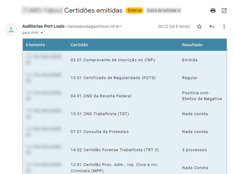 - Alertará sobre eventuais apontamentos fiscais e processuais que deixarem de constar nas novas certidões.